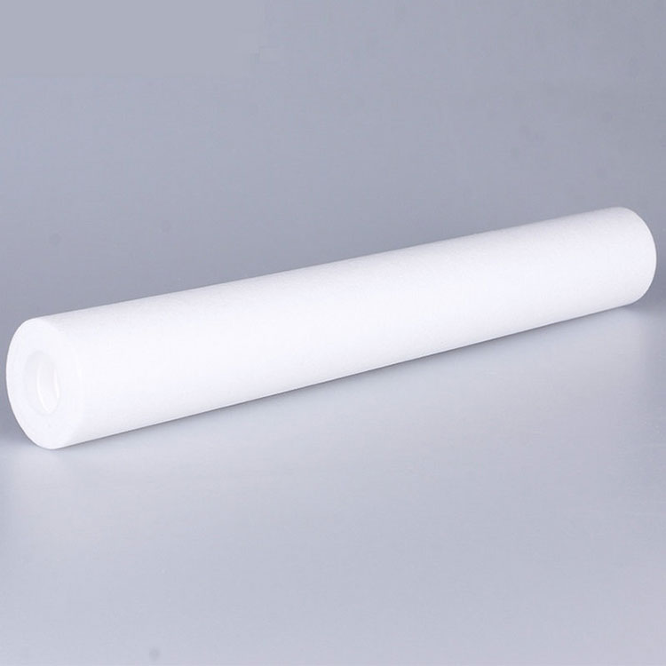 PP棉濾芯:采用無毒無味的聚丙烯顆粒,經加熱、熔融、紡絲、牽引、接收等工序纏繞粘結而成的管狀濾芯。濾芯的結構由外向內,越靠近濾芯內層,孔徑越小,過濾精度越高。聚丙烯棉濾芯具有流量大、耐腐蝕、耐高壓、成本低等特點,主要用于阻隔水中的鐵銹、泥沙、懸浮物等大顆粒物。